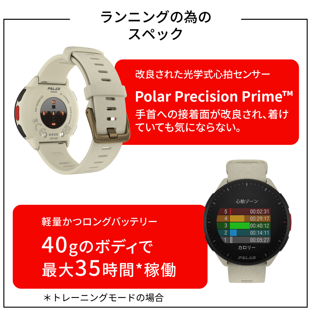 POLAR(ポラール) 900102175 GPSスマートウォッチ Pacer(ペーサー) ミルキーホワイト
