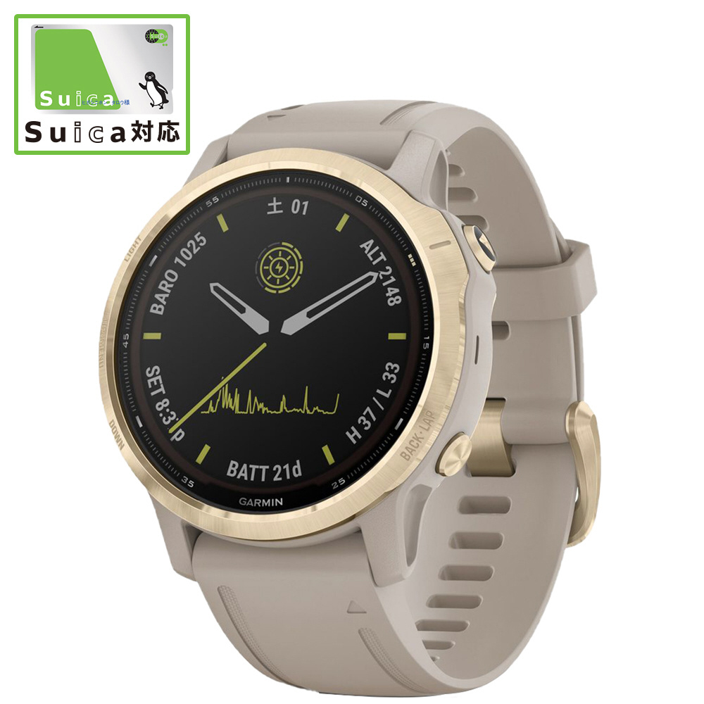 GARMIN(ガーミン) 010-02409-21 Fenix6S Pro Dual Power 【Suica対応】 Light Gold Sand