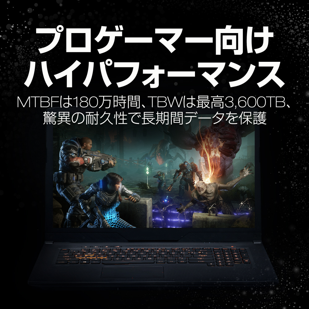 | 仕様3 | 合計書込みバイト数(TB):3600TB MTBF:180万時間 |