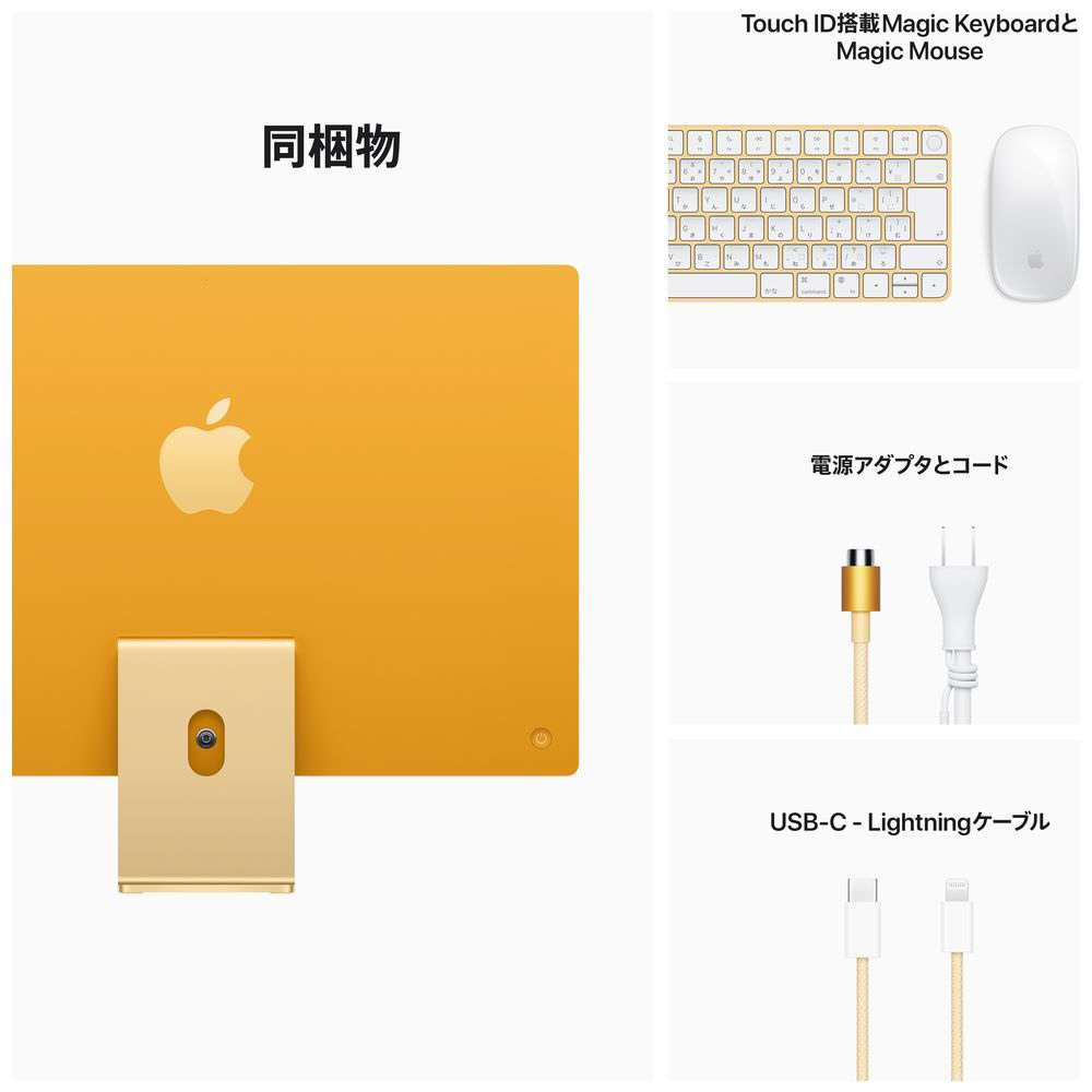 Apple(アップル) iMac Retina4.5K 24inch 2021 Apple M1 8コアCPU 8コアGPU 8GB 256GB イエロー iMac21.1