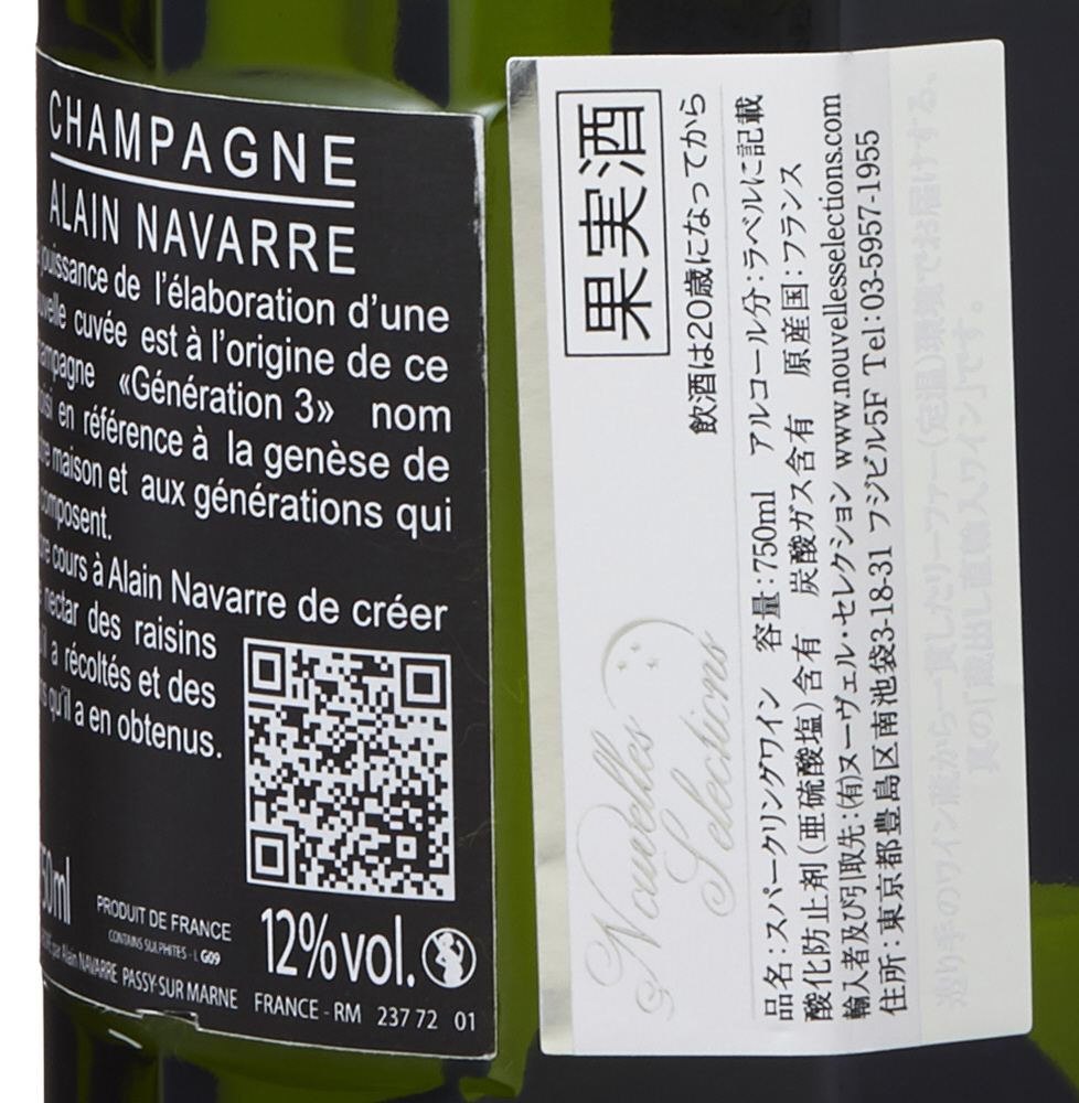 ワイン アラン・ナヴァール ジェネラシオン・トロワ NV 750ml【シャンパン】