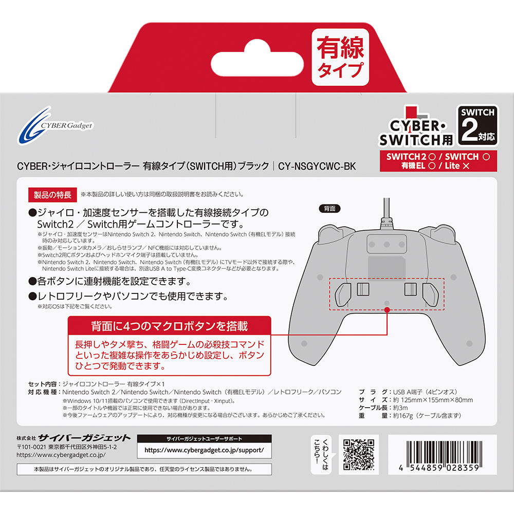 サイバーガジェット Switch 2/Switch用 ジャイロコントローラ有線タイプ