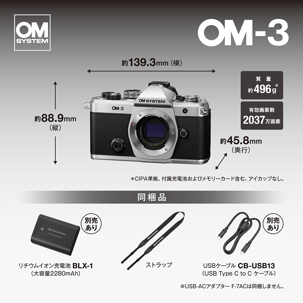 「OM-3」は、往年のフィルム一眼レフカメラ「OLYMPUS OM-1」の設計思想を継承し、特徴的なペンタ部やカメラボディー両サイドのデルタカット、軍艦部のダイヤル形状などの洗練された美しいデザインと優れた操作性、所有欲を満たす高い質感を備えています。感性を刺激し、アウトドアフィールドへ誘う道具としての魅力を高めました。