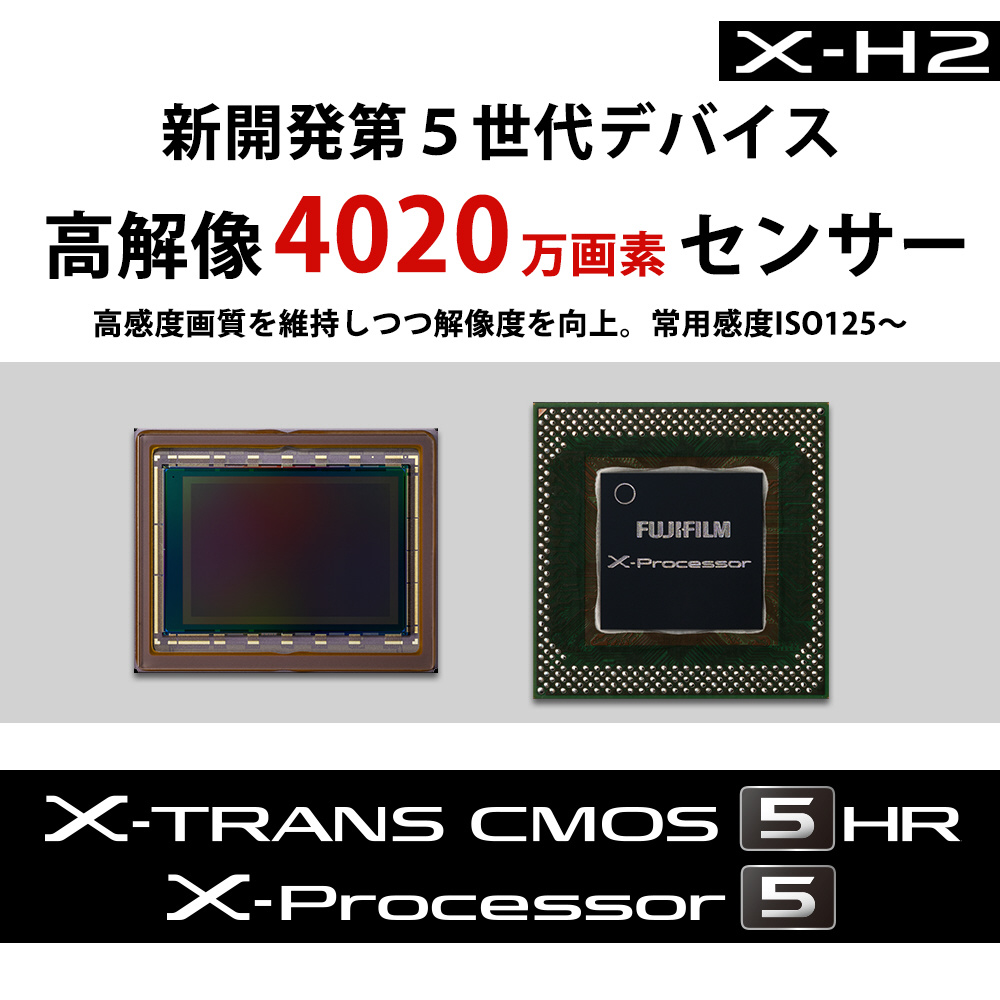 新開発の裏面照射型約4020万画素「X-Trans CMOS 5 HR」センサーと、高速画像処理エンジン「X-Processor 5」を搭載し、「Xシリーズ」史上最高画質を実現したフラッグシップモデル。高画素を生かしたハイクオリティな写真のみならず、高精細な8K/30Pの映像を撮影可能。