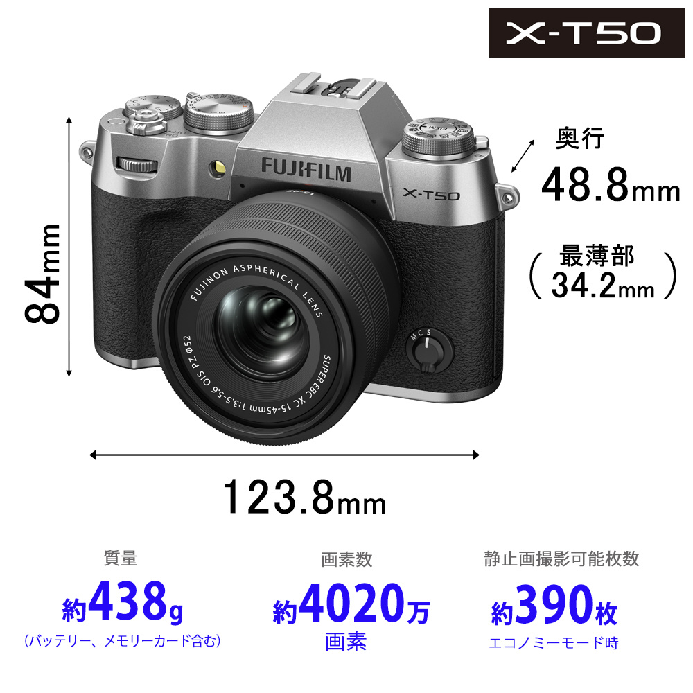商品名 FUJIFILM X-T50 ボディ シルバー  日英2か国語モデル ミラーレス一眼 [ボディ単体]