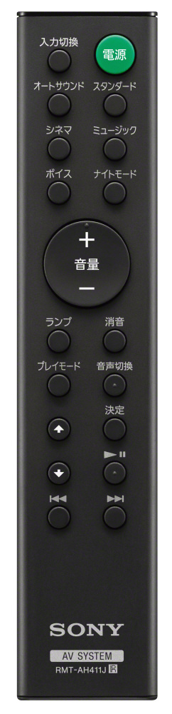 | 付属品 | ワイヤレスリモコン(RMT-AH411J)、電池、光デジタル音声コード、壁掛けガイド |