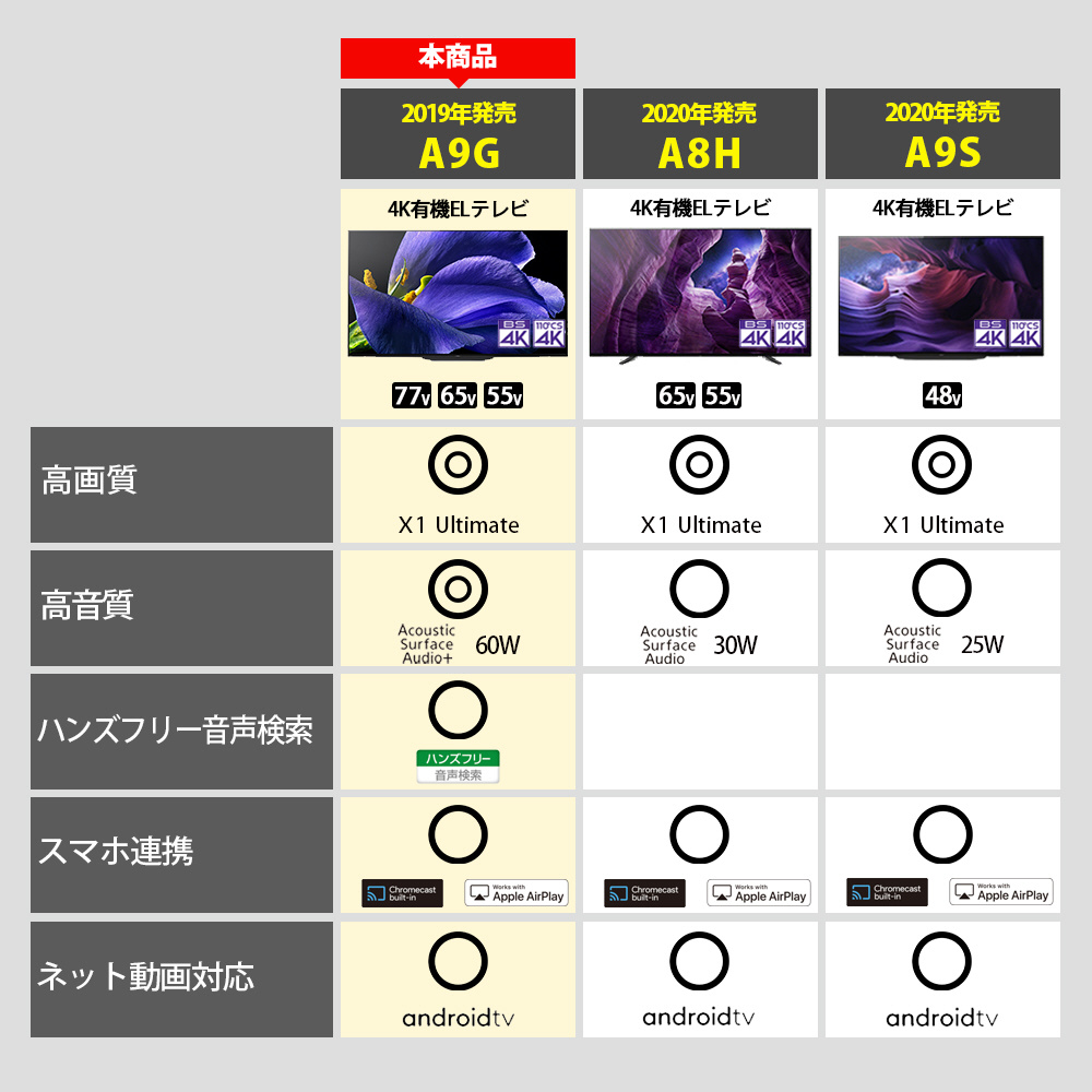 SONY(ソニー) 有機ELテレビ BRAVIA(ブラビア) KJ-77A9G [77V型 /Bluetooth対応 /4K対応 /BS・CS 4Kチューナー内蔵 /YouTube対応]