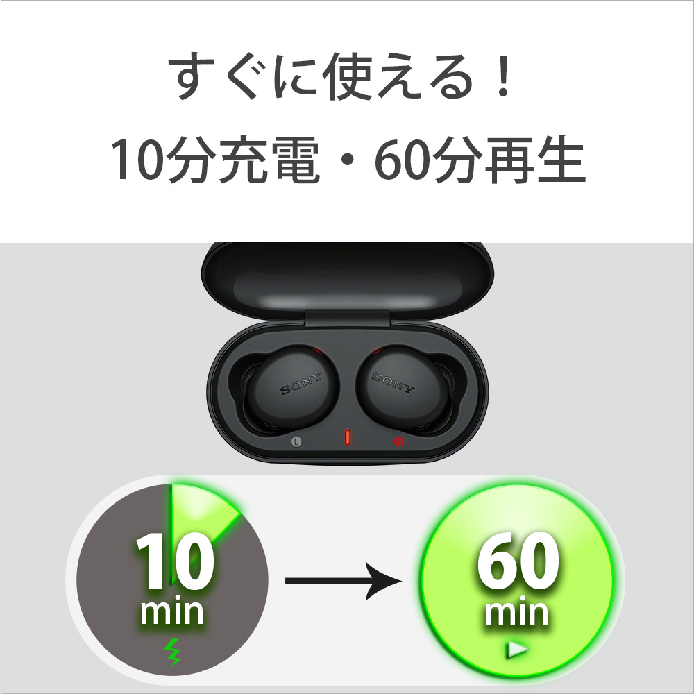 本体のみで9時間、ケース充電1回で合計18時間の長時間バッテリー搭載。また、クイック充電にも対応しており、10分の充電で60分再生可能です。