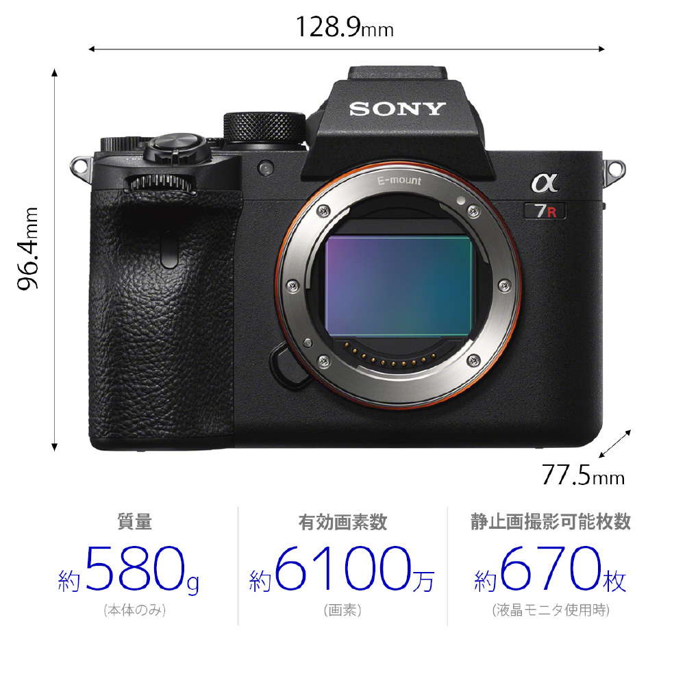 有効約6100万画素、最高約10コマ/秒の高速連写、リアルタイムトラッキングを搭載したフルサイズ一眼『α7R IV』のツーリストモデル。