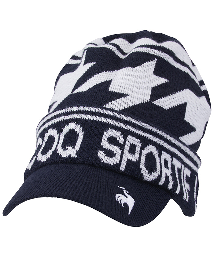 ルコック メンズ 庇付きロゴジャカードニットキャップ(フリーサイズ:57~59cm/ネイビー) QGBUJC15