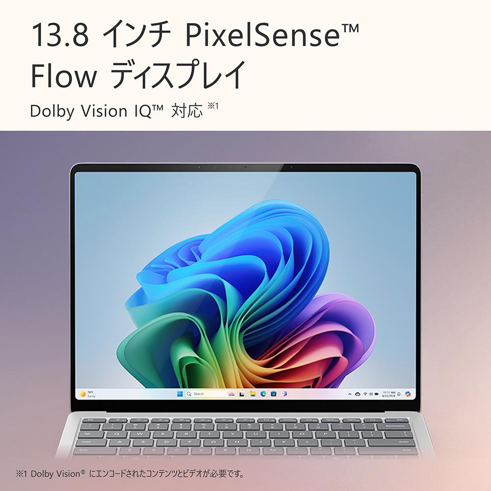 | 仕様2 | タッチスクリーン: 13.8 インチ PixelSense Flow ディスプレイ 縦横比: 3:2 コントラスト比: 1400:1 最大 120Hz の動的リフレッシュ レート カラー プロファイル: sRGB、ビビッド 個別に色調整されたディスプレイ アダプティブ カラー アダプティブ コントラスト 自動カラー マネジメント タッチ機能: 10 ポイント マルチタッチ Dolby Vision IQ 対応 Corning Gorilla Glass 5 |