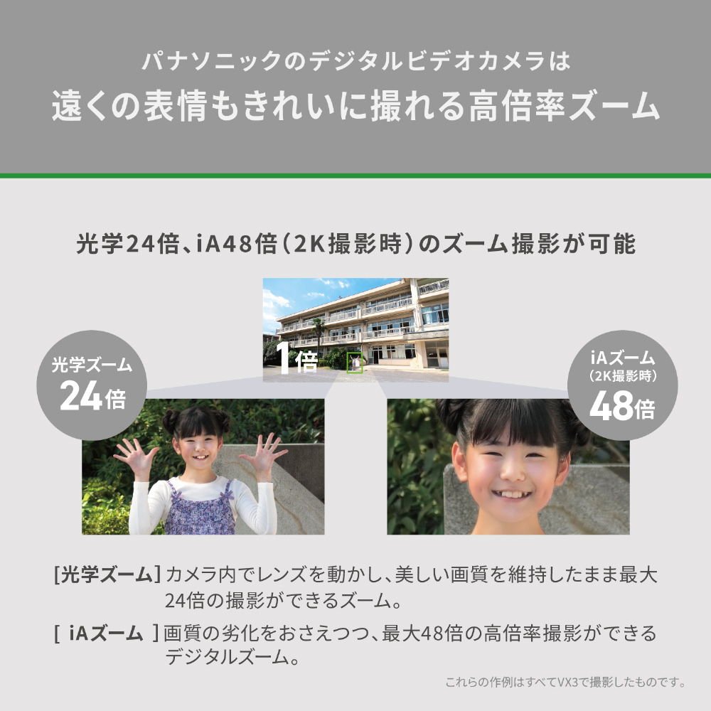 | ズーム倍率 | iAズーム 4K:32倍、2K:48倍 光学ズーム:24倍 |