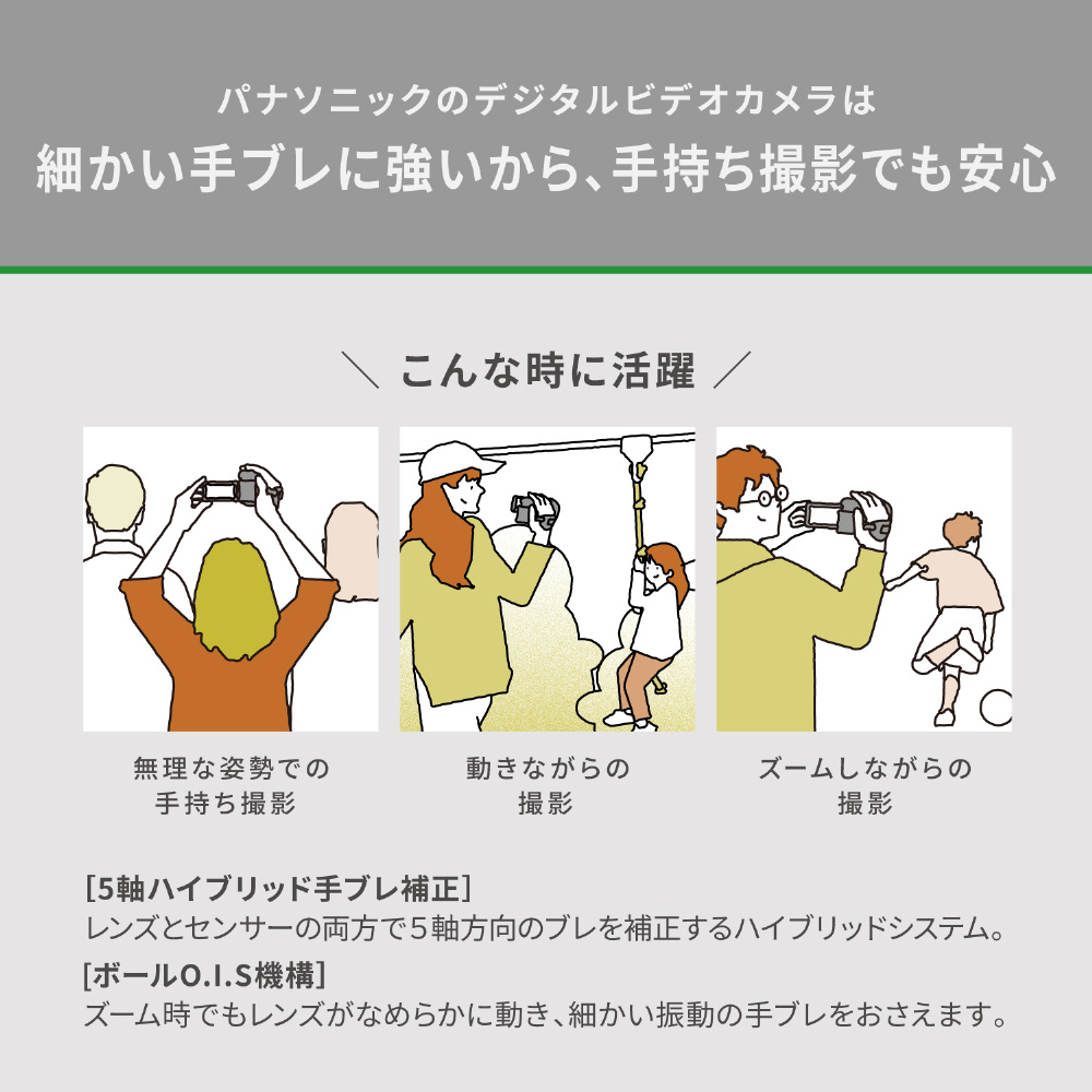 | 付属品 | レンズフード、バッテリーパック(VW-VBT380)、 ACアダプター、HDMIマイクロケーブル、 USB接続ケーブル |