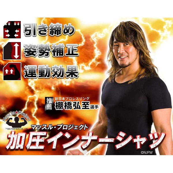 この加圧インナーシャツは、人間工学に基づいて上半身全体へ強い圧力を加え引き締め、さらに補正加工により正しい姿勢に近づけます。