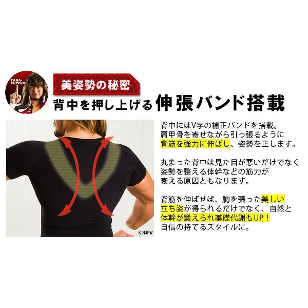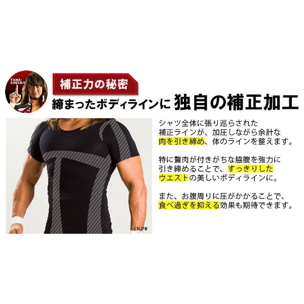シャツ全体に張り巡らされた補正ラインが、加圧しながら余計な肉を引き締め、体のラインを整えます。特に贅肉が付きがちな脇腹を強力に引き締めることで、すっきりしたウエストの美しいボディラインに。