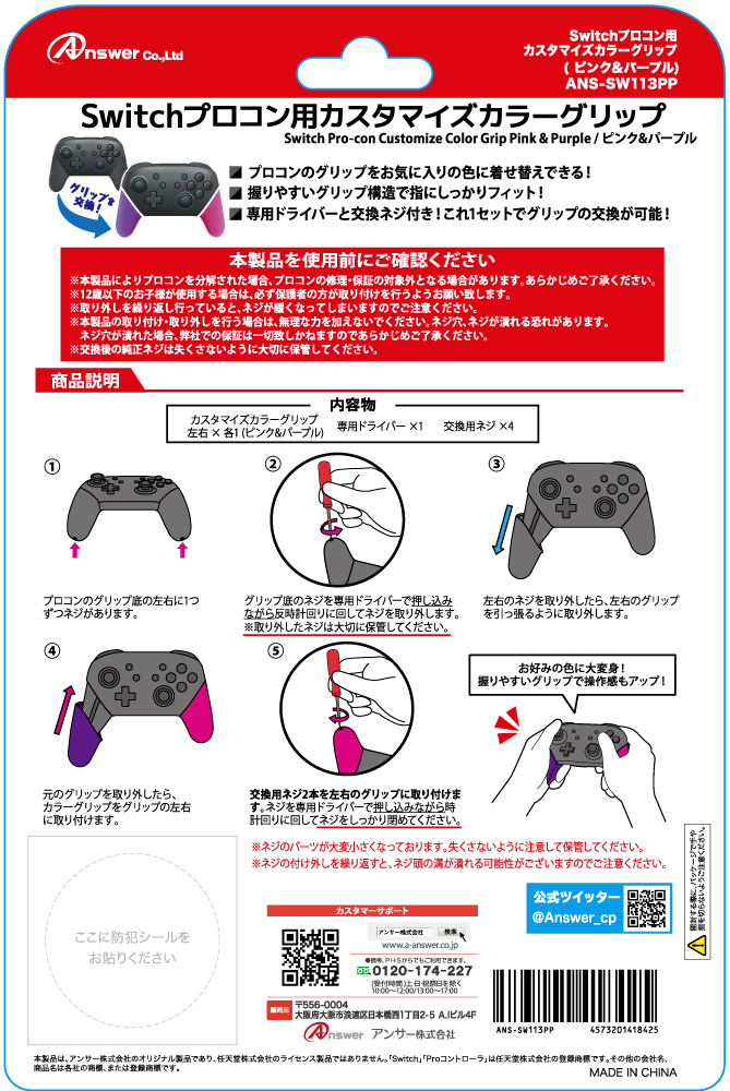 アンサー Switchプロコン用 カスタマイズ カラーグリップ