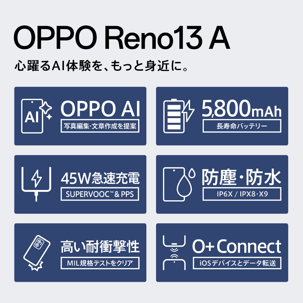 OPPO(オッポ) 【SIMフリー】OPPO Reno13 A チャコールグレー「CPH2699CG」Qualcomm Snapdragon 6 Gen 1 6.7インチ・メモリ/ストレージ:8GB/128GB nanoSIM ×2 eSIM対応【防水・防塵・おサイフケータイ】