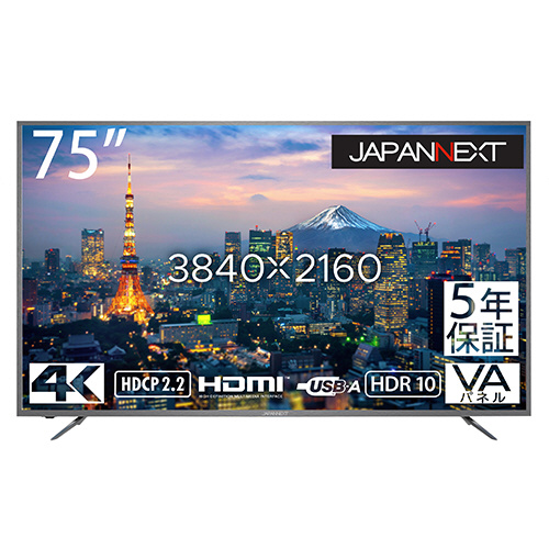 JAPANNEXT PCモニター VA/5年保証 ブラック JN-HDR750V4K-H5 [75型 /4K(3840×2160) /ワイド]