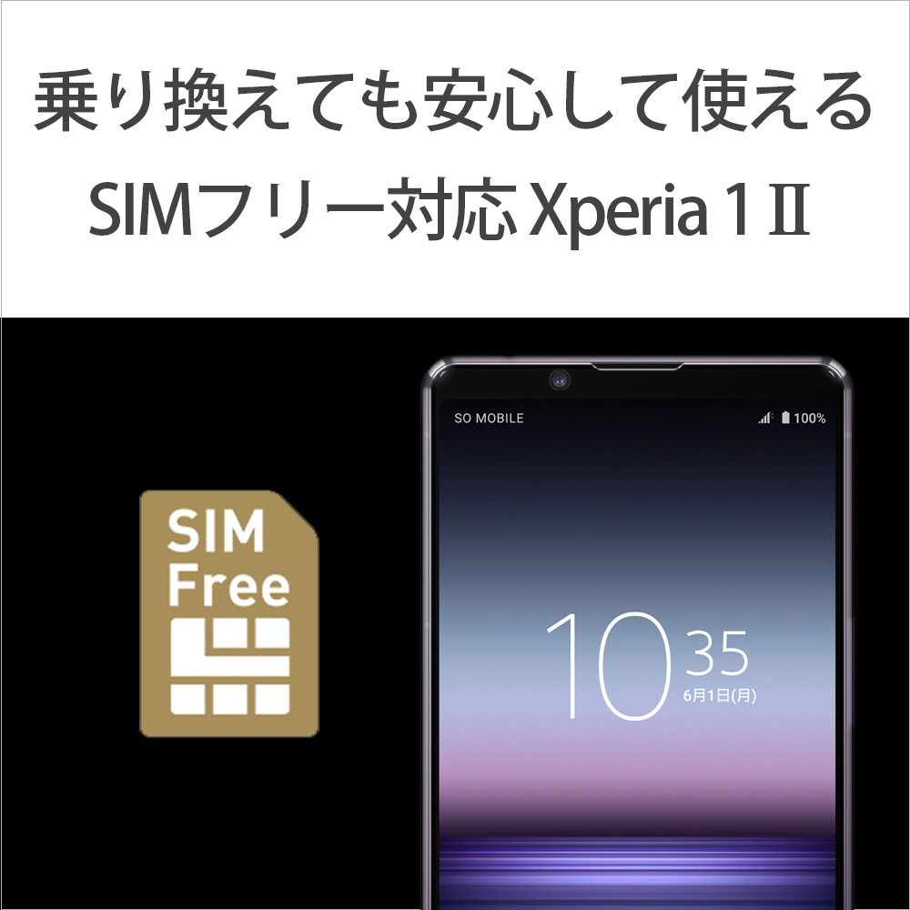商品名 【SIMフリー】 ソニー Xperia1 II 5G・防水・防塵・おサイフケータイ Snapdragon 865 6.5型・メモリ/ストレージ:12GB/256GB nanoSIM x2 ドコモ / au / ソフトバンクSIM対応 SIMフリースマートフォン Xperia