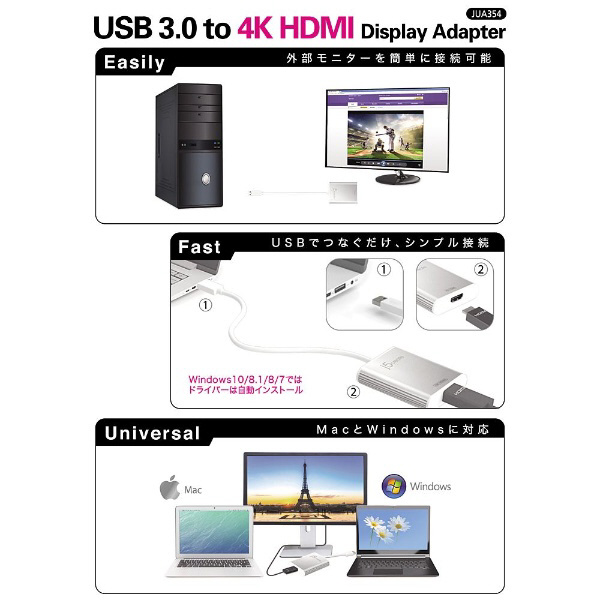 J5 映像変換アダプタ [USB-A オス→メス HDMI] JUA354