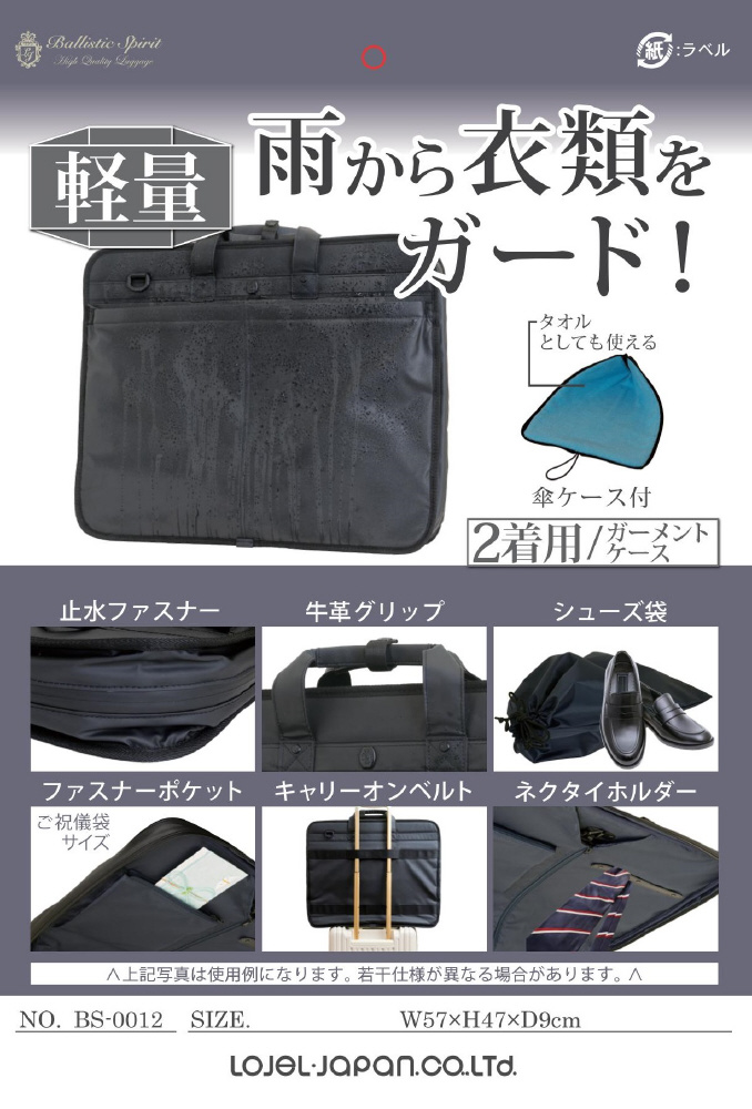 バリスティックスピリット 2着用ガーメントケース ブラック BS-0012BK