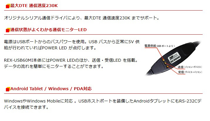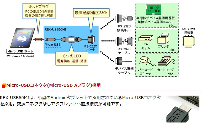 | 商品名 | USBシリアルコンバータ(Micro-USB Aタイプ) REX-USB60MI |