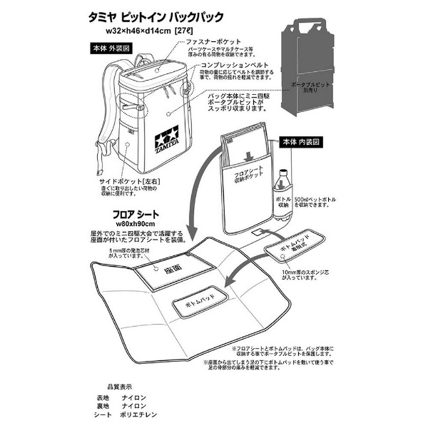 タミヤ タミヤオリジナルグッズ タミヤ ピットイン バックパック (黒・赤) 67233