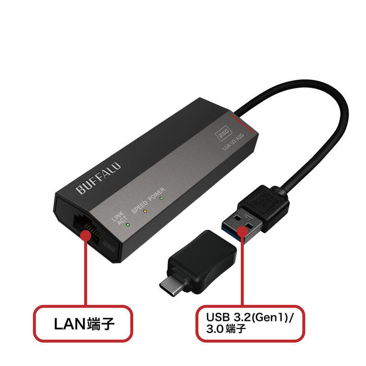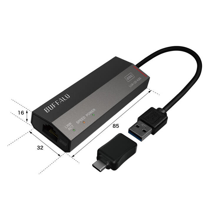 BUFFALO(バッファロー) LAN変換アダプタ [USB-C+USB-A オス→メス LAN] 2.5Gbps対応(Mac/Windows11対応) LUA-U3-A2G/C
