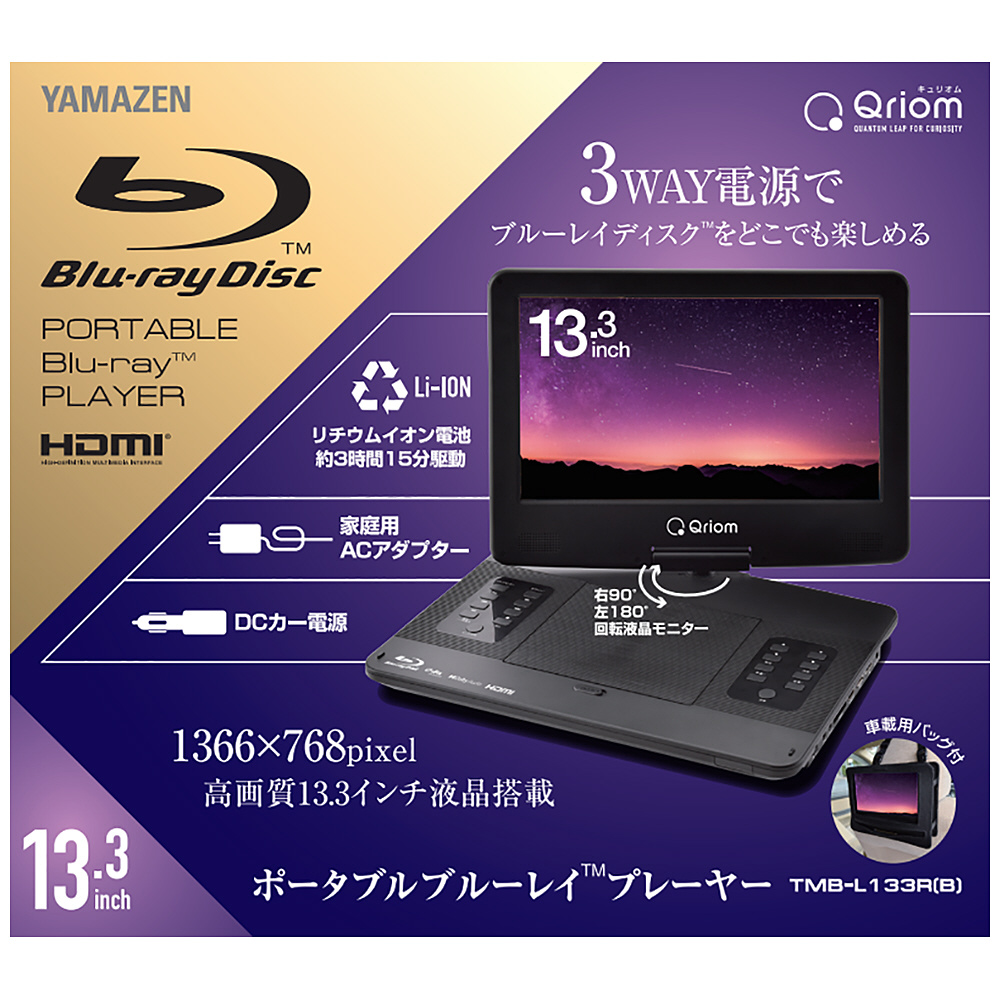 QRIOM 13.3インチ ポータブルブルーレイプレーヤー TMB-L133R(B) [13.3V型]