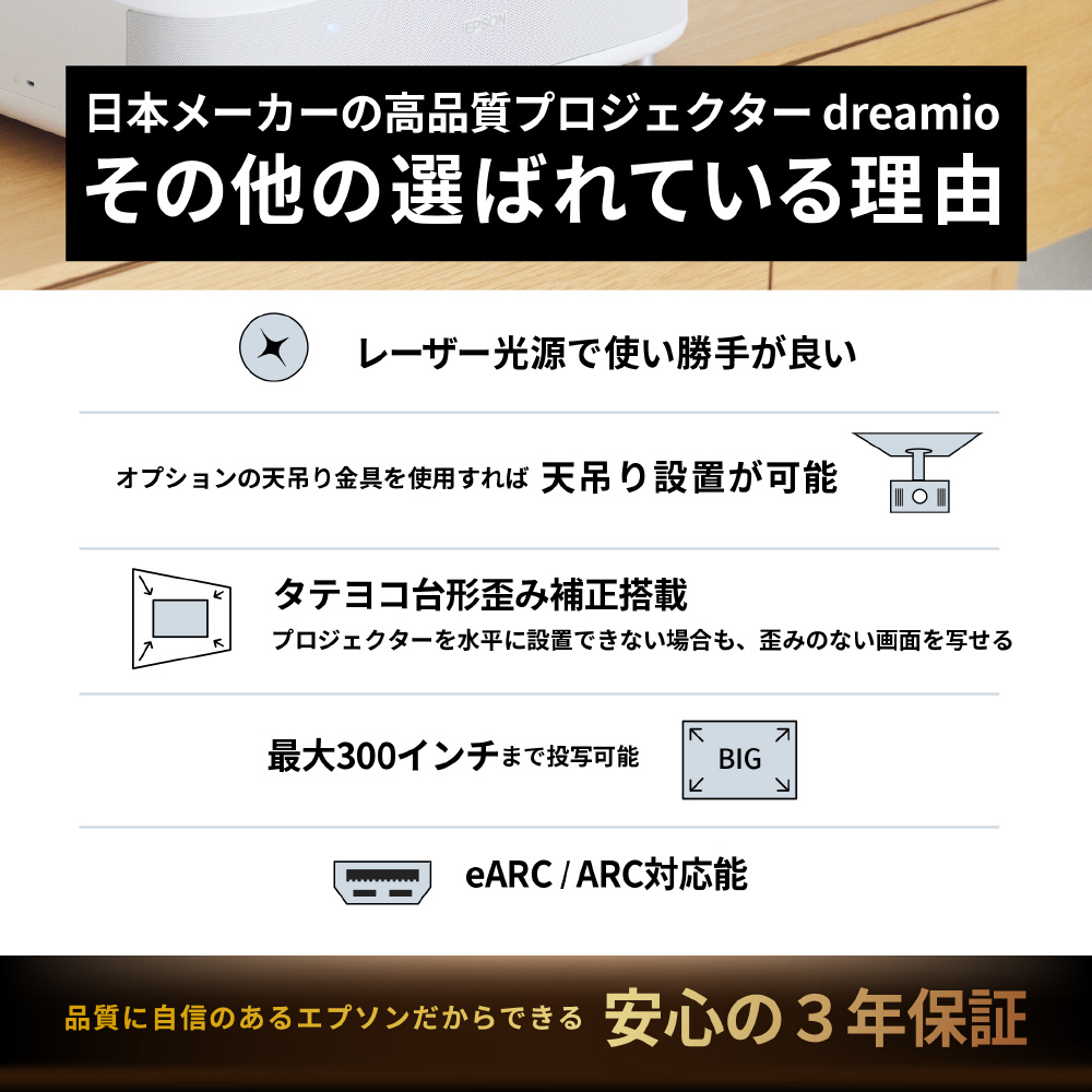 | 商品名 | ホームプロジェクター dreamio(ドリーミオ) ホワイト EH-LS11000 |