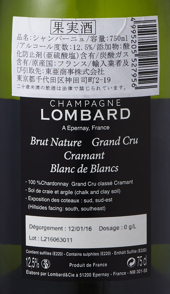 ワイン ロンバール ブリュット・ナチューレ ブラン・ド・ブラン グラン・クリュ クラモン NV 750ml【シャンパン】