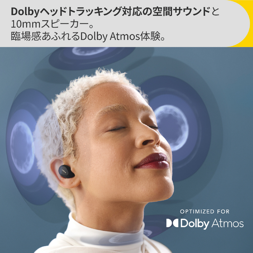 Dolbyによる完全なイマーシブサウンドに没入。Elite 10の、Dolbyヘッドトラッキング テクノロジーを備えた空間サウンドにより、さらに臨場感あふれる Dolby Atmos体験が得られます。頭の動きに合わせてサウンドが追従する3Dオーディオ環境が出現し、思わず耳を疑うようなサウンドに包まれます。Elite 10には10mmのスピー