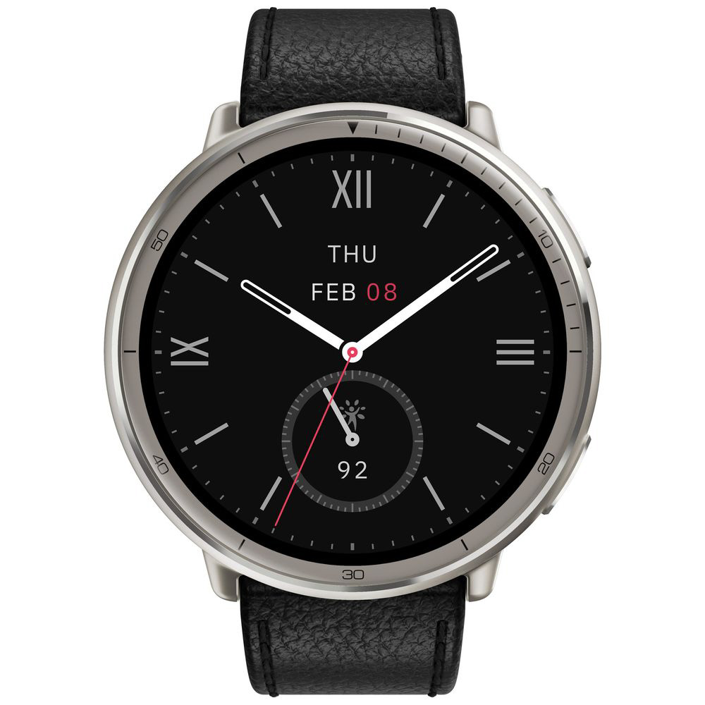 AMAZFIT スマートウォッチ Amazfit Active 2 Round 44mm プレミアムバージョン ブラックレザー